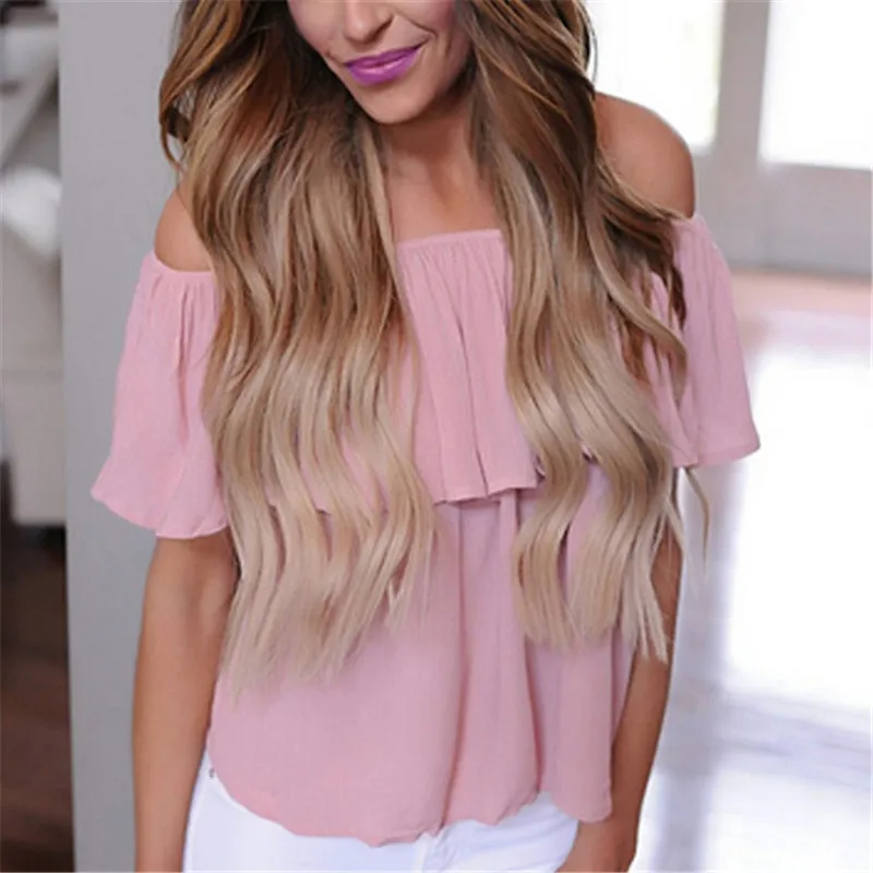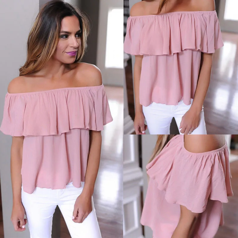 2017 модные новые женские сексуальные повседневные топы с рюшами и открытыми плечами, блузка, летняя стильная женская одежда высокого качества