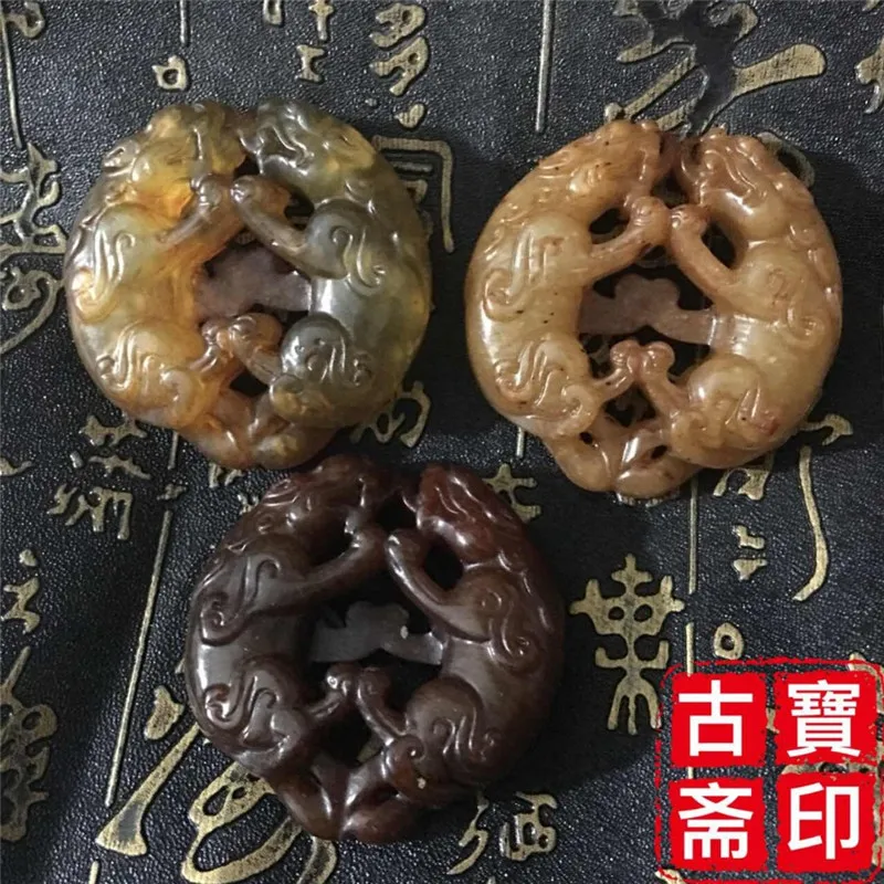 Старинный нефритовый кулон с подвеской для смелых двойных украшений Huan