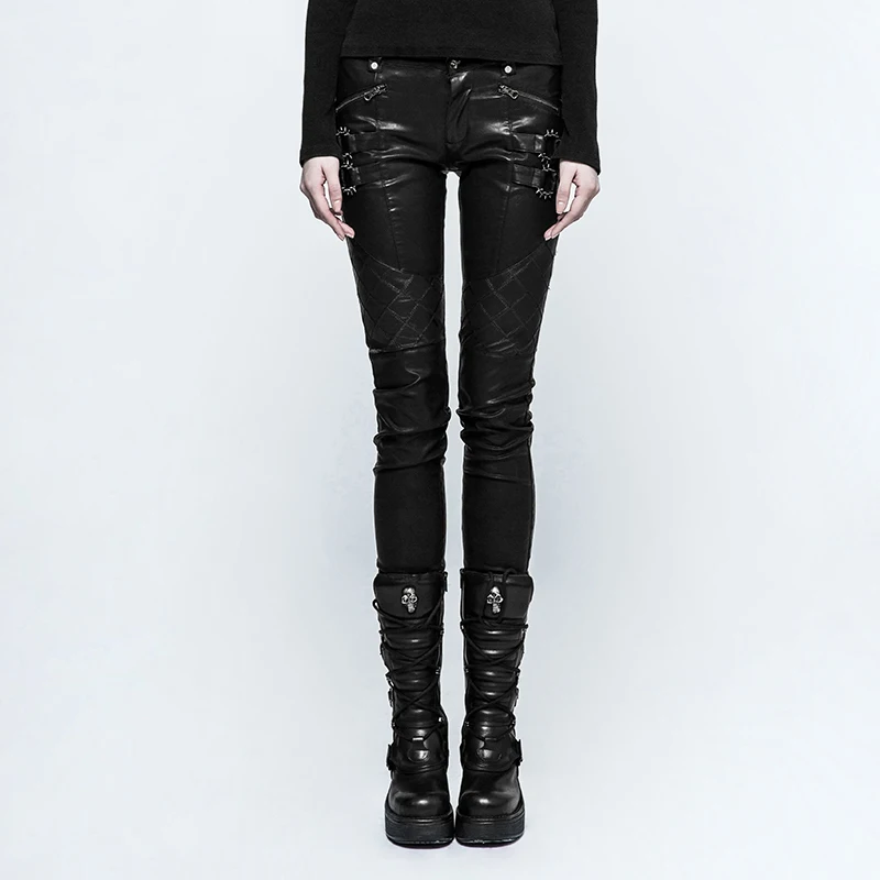 Женские брюки из искусственной кожи с заклепками в стиле панк-рок; Модные брюки с пряжкой в стиле панк