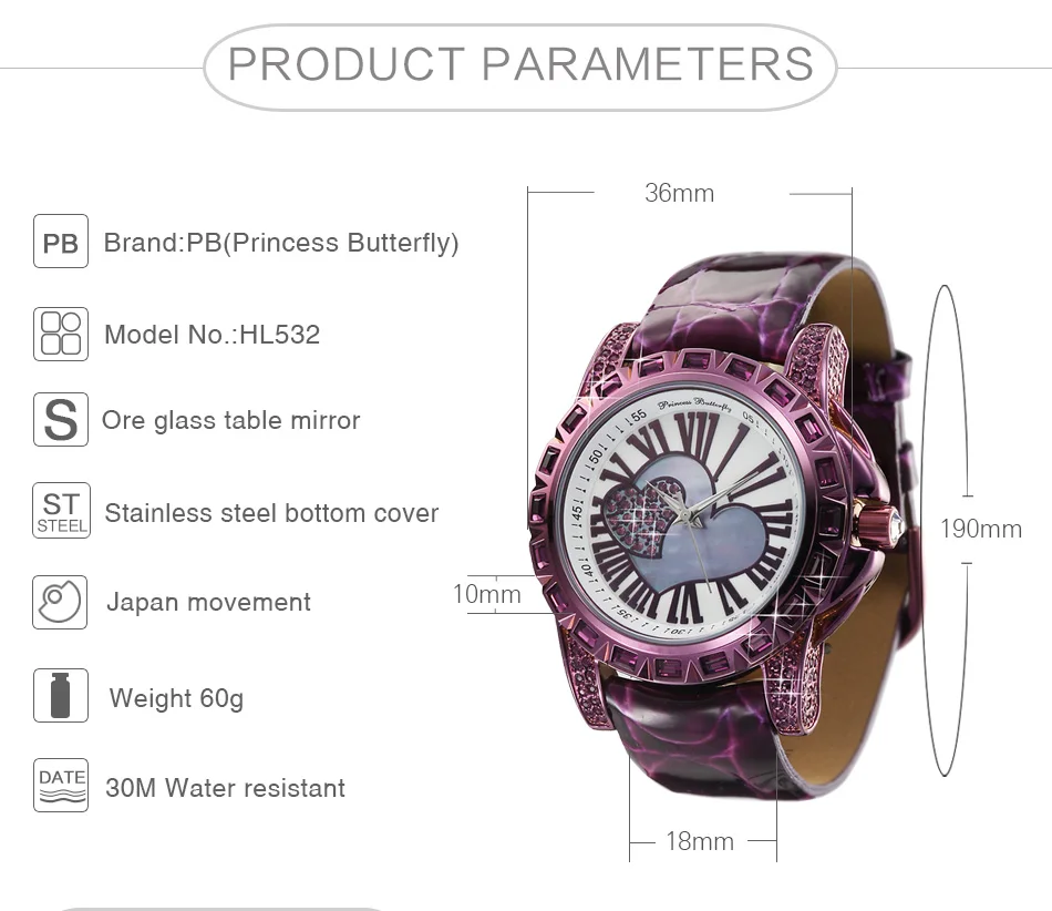 Принцесса бабочка кристалл любовь сердце❤️ Кожаный ремешок WДвумя способами; Женские часы