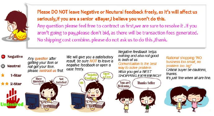 - Мы оставим положительную обратную связь для вас после получения оплаты. Ваши отзывы очень полезны для нас, мы высоко ценим положительные отзывы и 5 очков DSR.