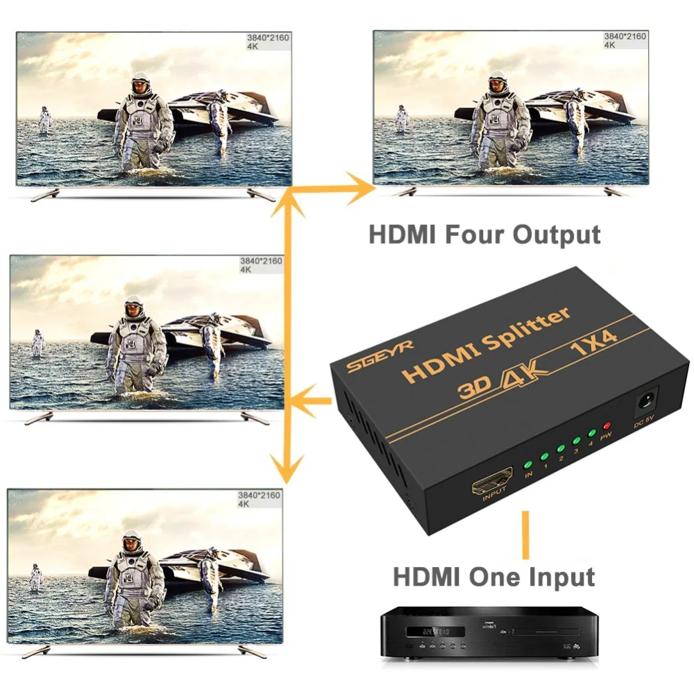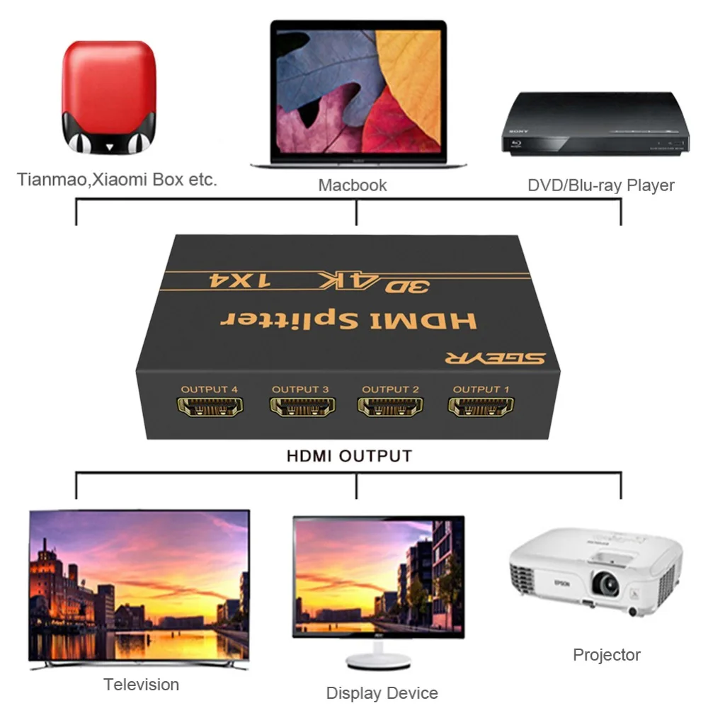 4K HDMI сплиттер 1x4,SGEYR 4 порта HDMI 1,4 Divisor 1 в 4 Out сплиттер Поддержка порта 4K @ 30Hz 3D 1080P для PS3/4 Blu-Ray плеер HDTV
