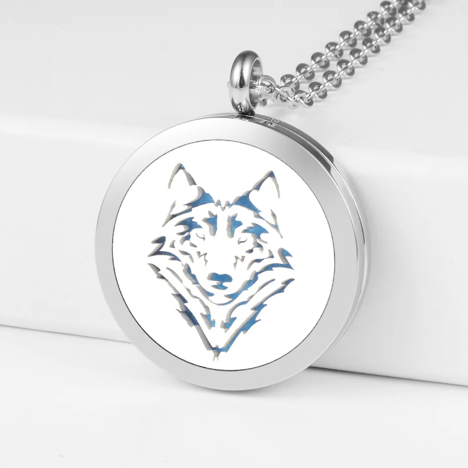 Волчий диффузор медальон Ароматерапия Эфирные масла ожерелье 20 мм 25 мм 30 мм магнитный 316L Нержавеющая сталь Золото духи кулон