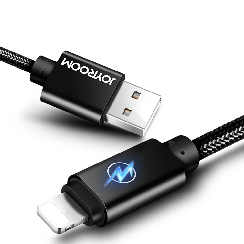 1 м 2 м умный светодиодный металлический Плетеный USB кабель для зарядки данных для iPhone X XS 11 Pro Max XR 6 6S 7 8 Plus 5 5S 5C SE USB кабели для зарядки для iPad 4 mini 2 3 4 air 2 Pro