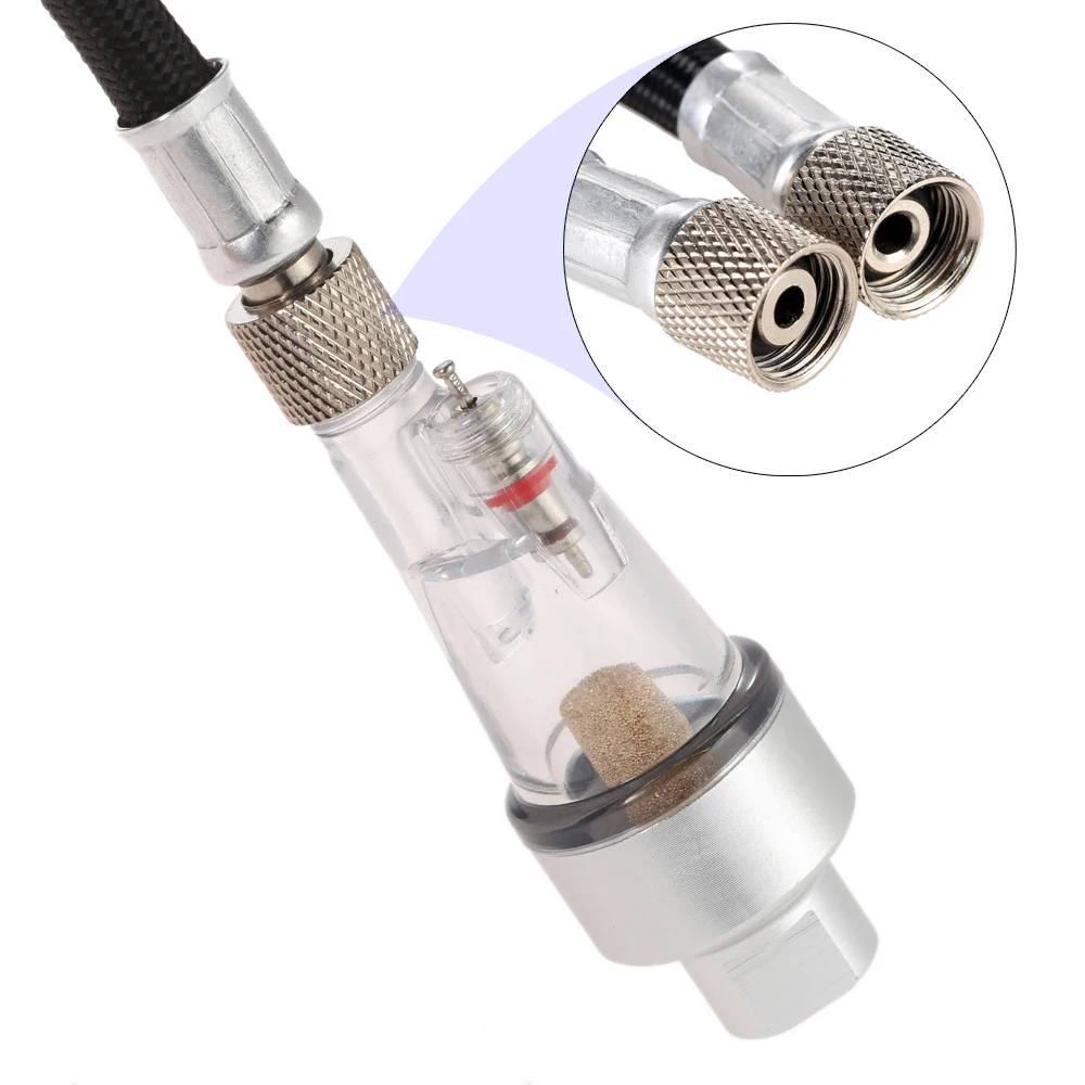 Включает портативный воздушный компрессор, воздушный шланг, двойного действия гравитационный питательный Аэрограф, мини воздушный фильтр, держатель, гаечный ключ сопла и капельница для глаз.