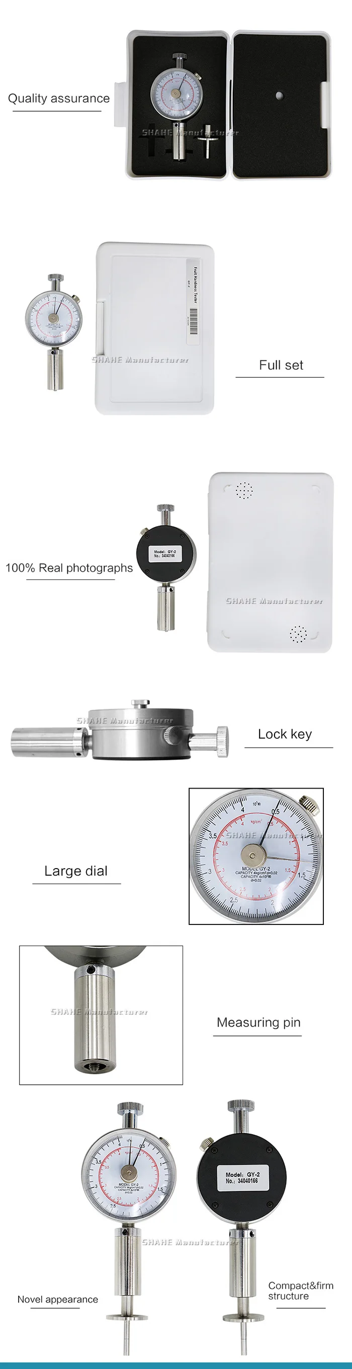 Фруктовый пенетрометр с 3 моделями: GY-1,GY-2,GY-3, которые специально для проверки твердости фруктов, таких как яблоко, груша, клубника, виноград и так далее. Оценка жгута и зрелости фруктов будет хороша для выращивания, хранения, экспорта, транспортировки, обработки и т. д.
