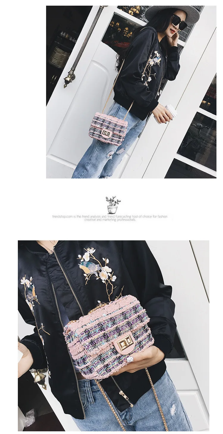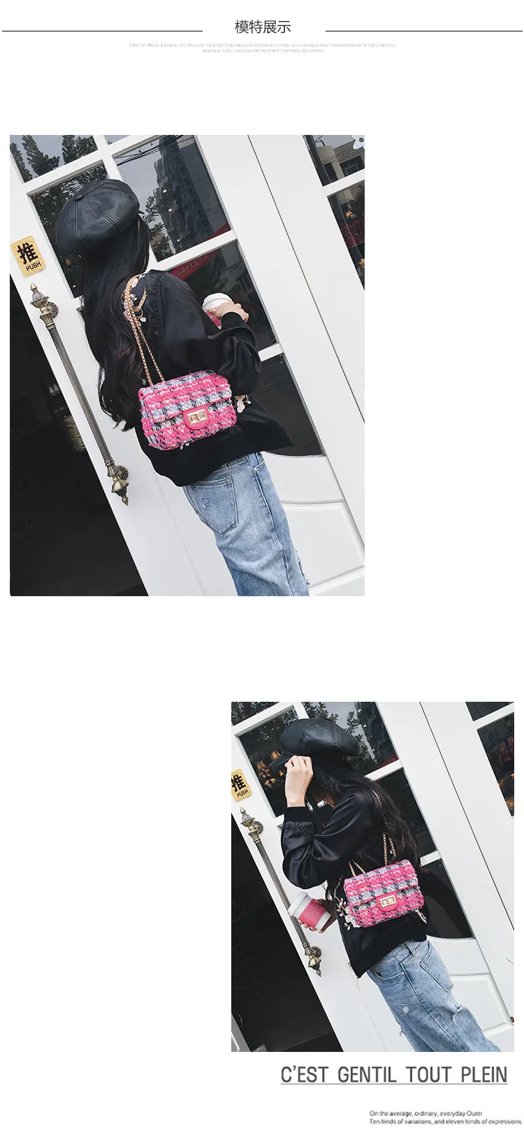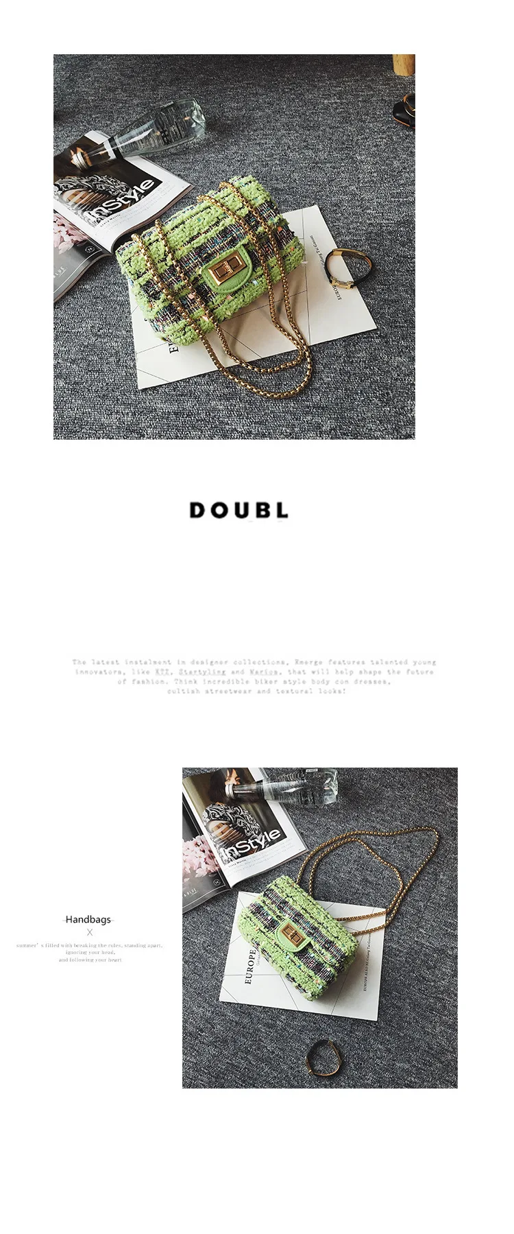 Emarald 2017, новая популярная модная женская шерстяная сумка с цепочками, Корейская мини-сумка, классические сумки, сумки через плечоРазмеры: 18 см x 13 см x 9 см