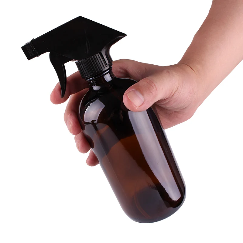 4 шт. 500 мл 16 унций бутылка с распылителем из янтарного стекла черным пусковым