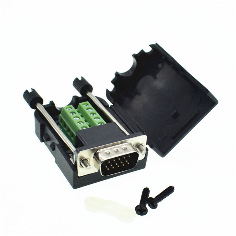 15 pin DB15 папа адаптер разъем D-SUB VGA терминал с пластиковой крышкой 3 + 6 кабель для передачи данных