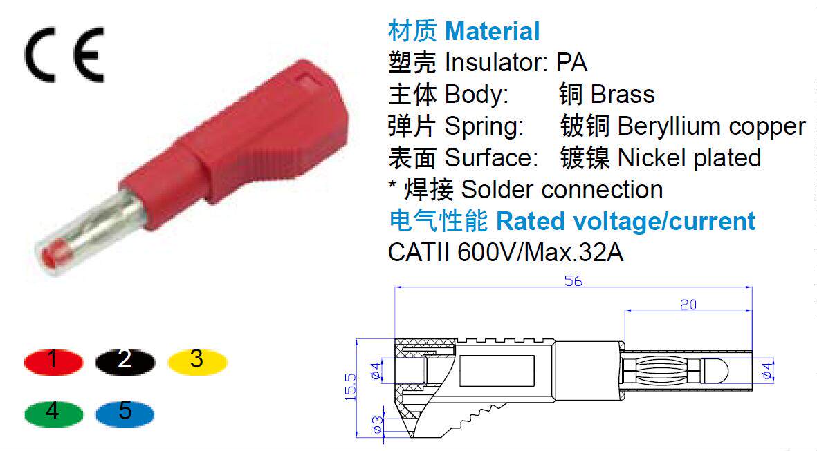Название продукта: $ number 4 мм безопасная вилка банана с прозрачной оболочкой