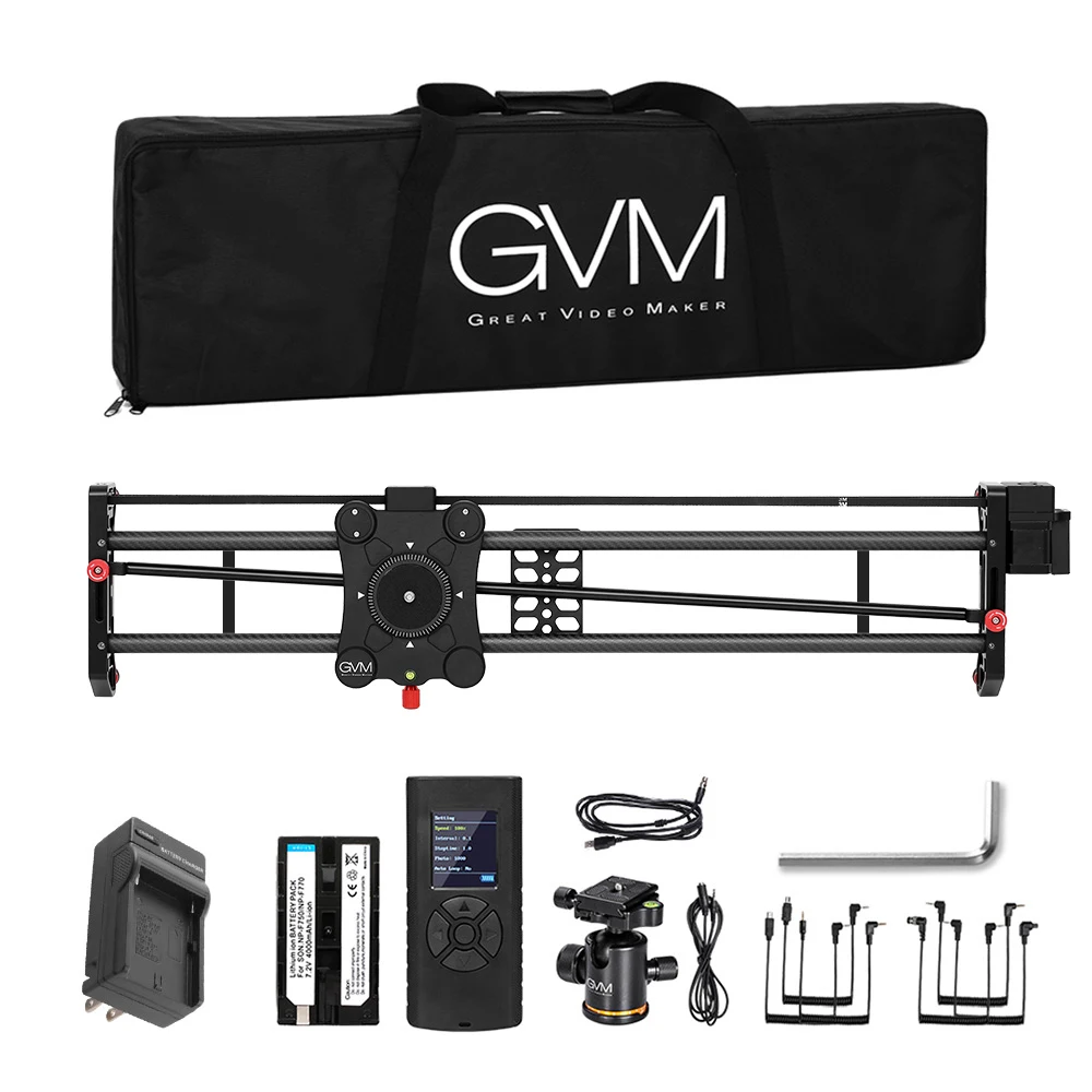 GVM GR-120QD 120 см моторизованный слайдер для фотосъемки, направляющий стабилизатор для видео, Рельс из углеродного волокна и алюминиевого сплава, 120 градусов панорамная съемка, функция автоматического отключения времени для dslr-камер, смартфонов с головкой штатива/управлением соединительная линия ler / Control ler/Удлинительный кабель для управления камерой/кабели для управления камерой/сумка для хранения/зарядное устройство/черный аккумулятор