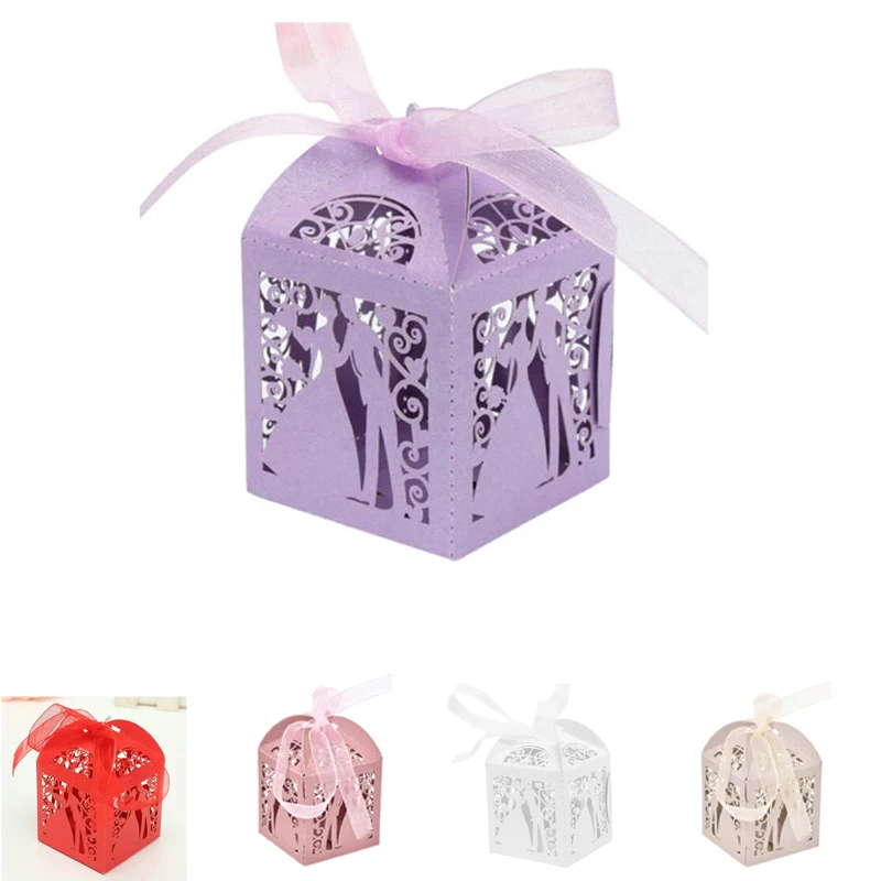 10 шт набор свадебных коробок с лентами (плоские коробки будут отправлены вам)
