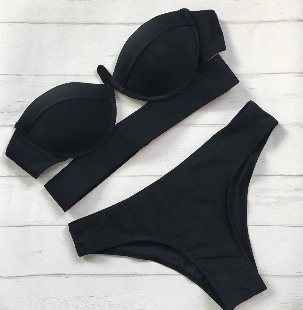2017 Женский однотонный купальник без бретелек пуш-ап с эффектом потертости, комплект бикини для женщин, сексуальная пляжная одежда, купальный костюм, Женская пляжная верхняя одежда