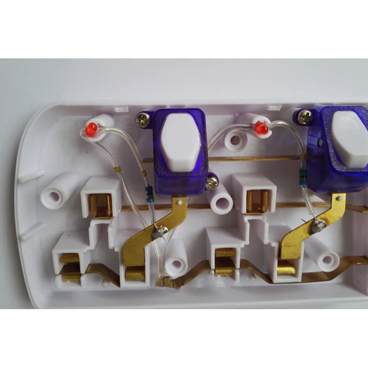 Длина линии: 3 м Количество гнезд: 5 или 6 цифр Мощность конструкции: 3000 Вт макс. Номинальное напряжение: 220 В ~ 50 Гц Номинальный ток: 13A