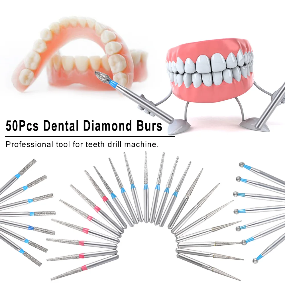 50 шт., стоматологическая Алмазная дрель, стоматологическая высокоскоростная Шлифовальная головка, шлифовка зубов, полировка и сглаживание, дрель для зубной машины