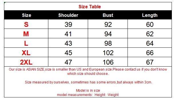 Примечание: возможны погрешности в пределах 1-3 см из-за измерения вручную. Спасибо за понимание. Размеры соответствуют азиатским стандартам, если вы испытываете трудности при выборе размера, вы можете связаться с нами.