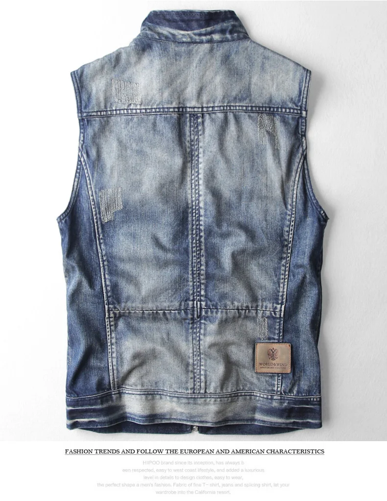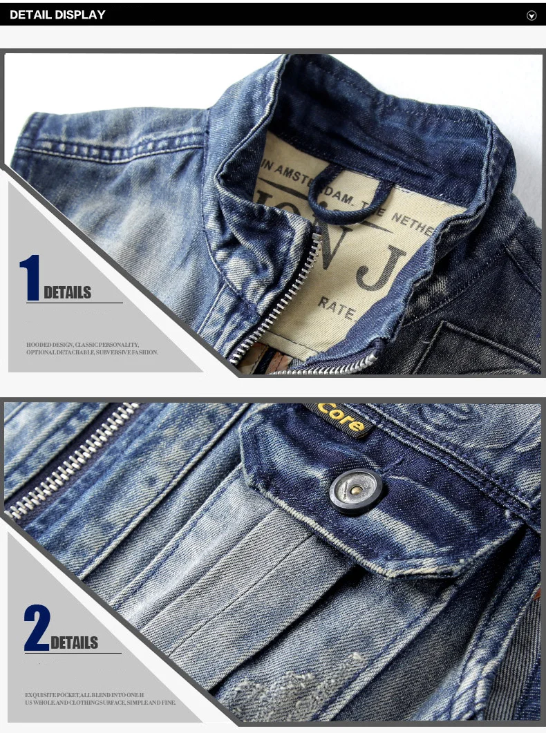Джинсовая куртка для мужчин повседневная верхняя одежда из денима с дырками