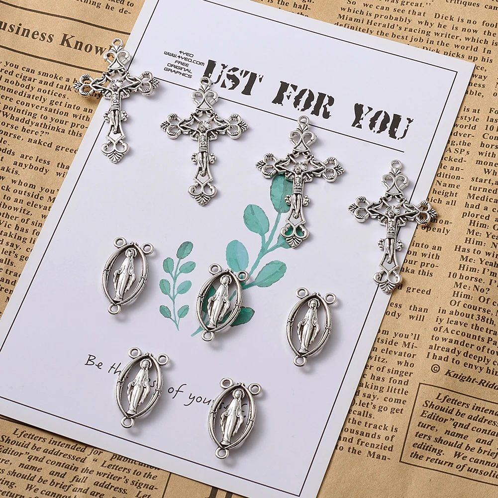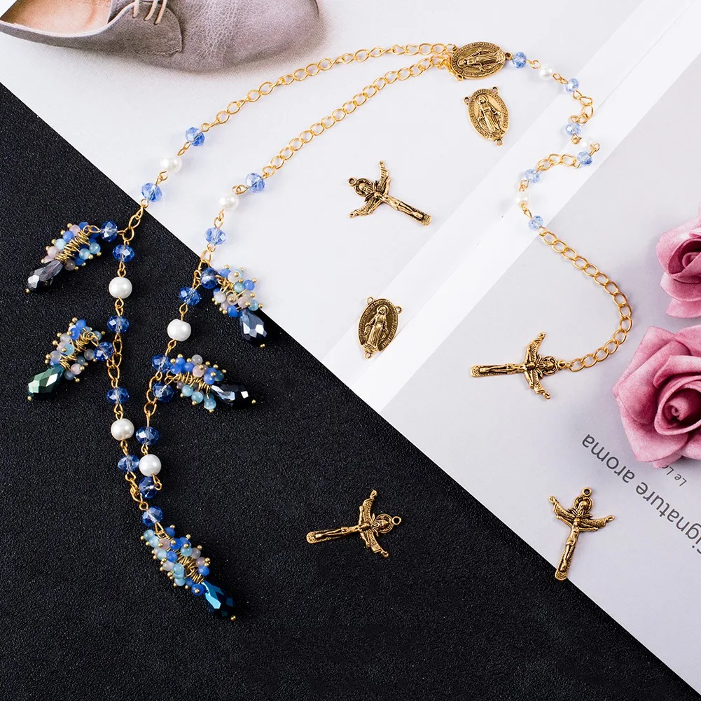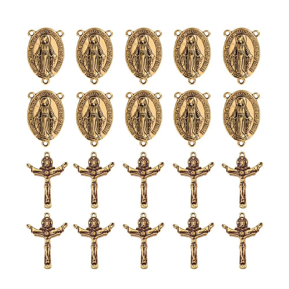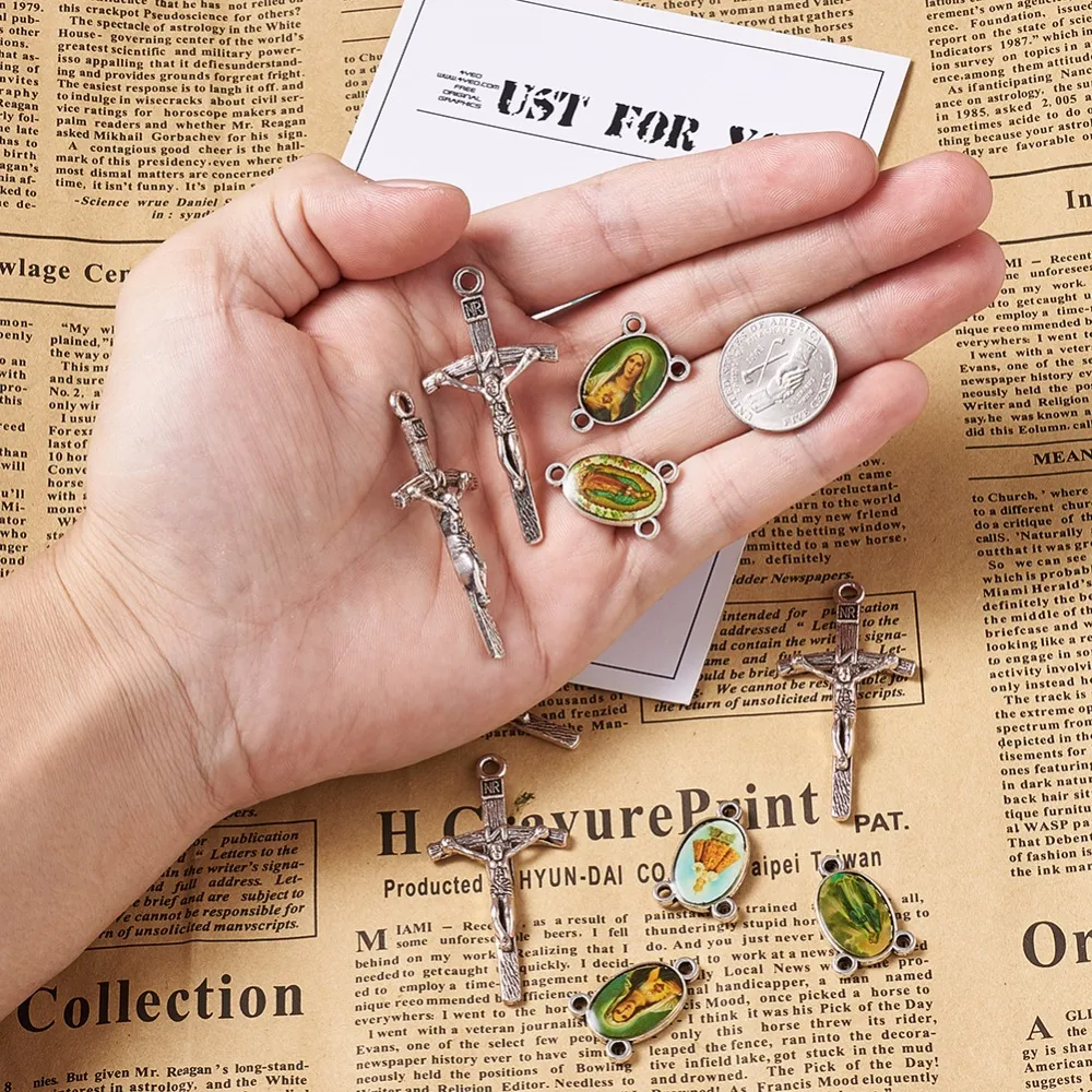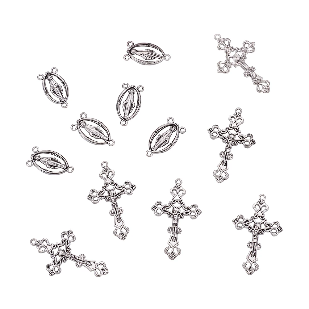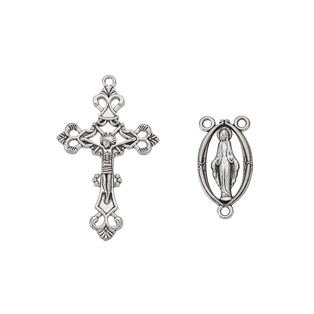 Pandahall 10 комплектов религиозный Розарий крест центр крест ожерелье Ссылка Шарм Подвески для DIY ювелирных изделий