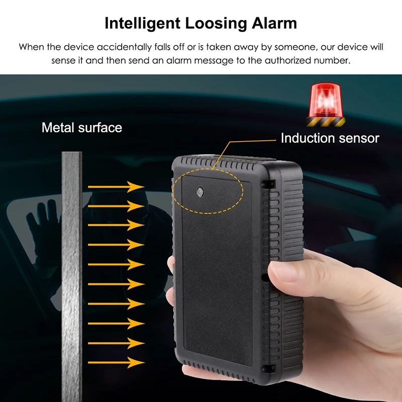 На задней части устройства находится индукционный датчик против удаления. Если этот покрытый индукционный датчик не будет покрыт снова, он отправит «Loosing Alarm» на номер admin и номер SOS SMS.