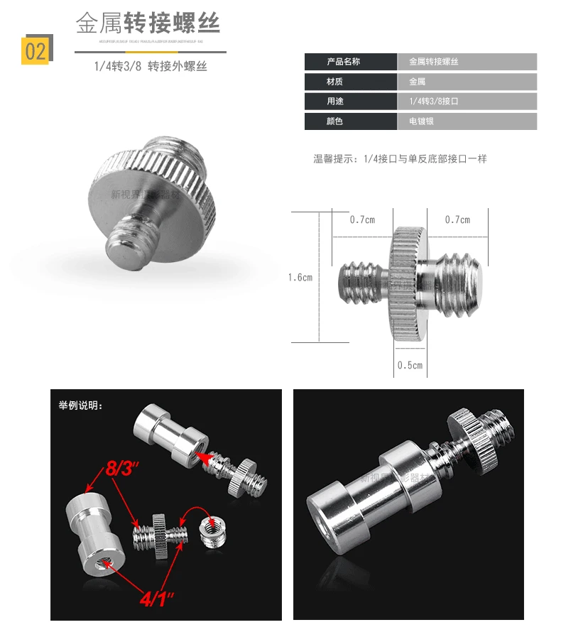 - Широко используется для аксессуаров камеры, таких как: штатив, монопод, шаровая Головка, стойка-светильник и т. д.