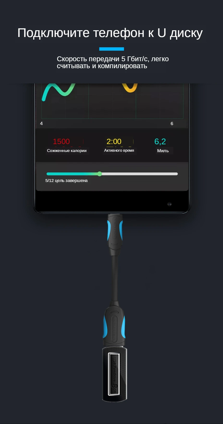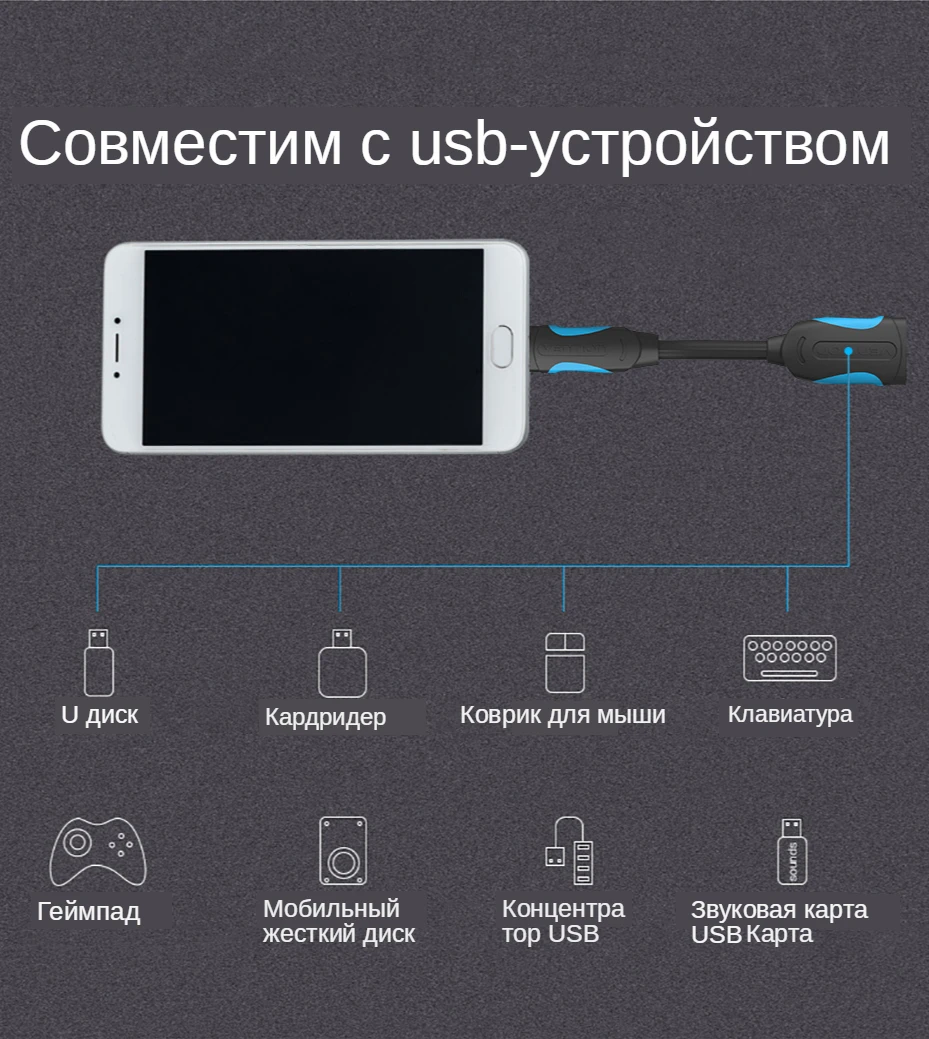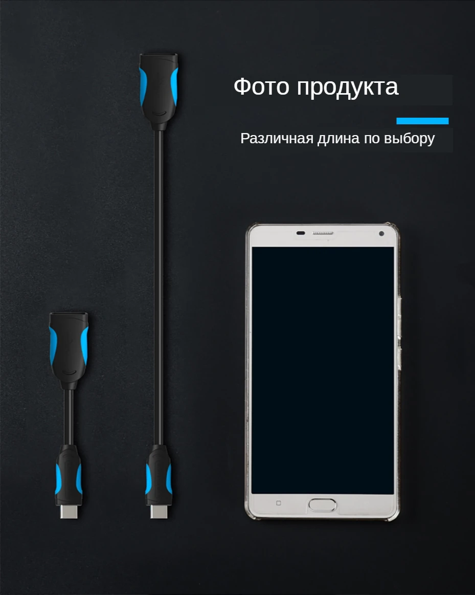 Первая модель - это плоский кабель Micro USB OTG, длина 10 см.