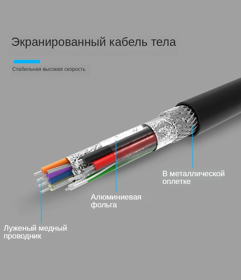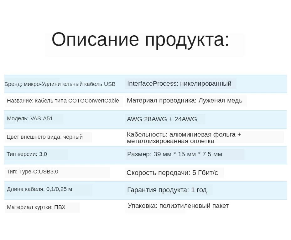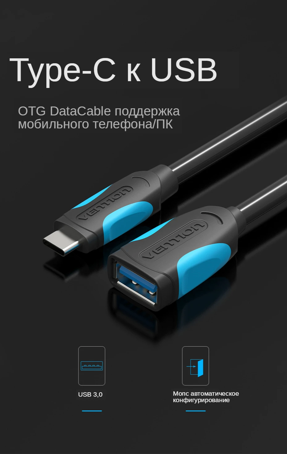 Третья модель-это круглый кабель OTG Type-c, длина 25 см.