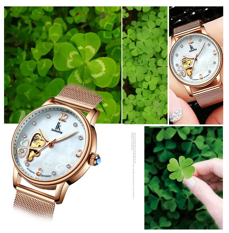 Особенности: указатель с светящимся дисплеем, полый Клевер креативный, Алмазный циферблат