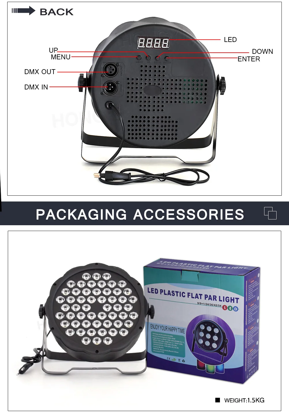 1. Ультра-тонкий 54 шт. светодиодный светильник, использующий передовую технологию разработки и обработки, обеспечивает ослепительный светильник, эффект ing 2. Система моющихся цветов RGB 3 в 1, которая может создать большое динамическое разноцветное мягкое освещение, подпитывающее вашу страсть и лучшую визуальную среду 3. 4 цифровой светодиодный дисплей и 3-контактный Мужской и Женский XLR интерфейс 4. Поддержка режима Sound-active / Auto / DMX / Master-slave 5. 8 DMX каналов и диммер, стробоскоп, импульсный, градиентный эффект изменения цвета 6. Пластиковый материал, прочный и простой в использовании 7. Двойные монтажные кронштейны, чтобы повесить на ферму, установить на стену или поставить на поверхность 8. Супер яркий для использования в помещении, отлично подходит для дискотек, клубов, КТВ, пабов, баров, банкетов, свадеб, семейных вечеринок и т. Д. Технические характеристики: * Цена Напряжение: AC90-260V тока/50-60 Гц * Мощность: 54 Вт * Цвет: RGB 3 в 1 * 54 светодиодный: 54 шт. X3W 3in1 RGB LED чип * Режимы: Sound-active / Auto / DMX / Master-slave * DMX512: 8 каналов * Автономная или основная/подчиненная конфигурация * Угол луча: 25 градусов * С 4 кнопками DMX светодиодный Дисплей * 64 встроенных цветных макросов * Без мерцания * DMX-512 протокол * Светодиодный импульсный и стробоскоп * Соединчющаяся между собой через 3-pin XLR кабель * Электронное Затемнение: 0-100% * Включает ножничную кокетку, чтобы повесить на ферму, крепление на стену или набор на полу * Длительный срок службы светодиода (50000 часа). * Продукт Размеры: 27,5x8,5x24,5 см/10,7x3,3x9,5 дюймов * Посылка Размеры: 28x10,5x26 см/10,9x4x10,1 дюймов * Г. Ш.:1550 г * Упаковочный лист: Сценический светильник * 1 шт. Шнур питания и DMX-кабель * 1 шт. Установка вешалки * 1 шт. Монтажные винты * 2 шт. Руководство на английском языке * 1 шт.