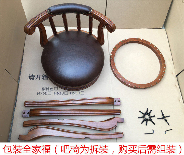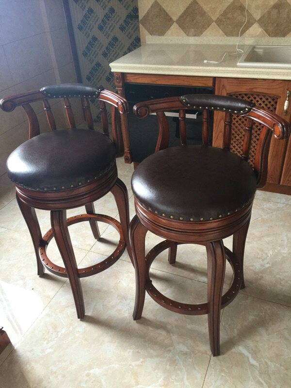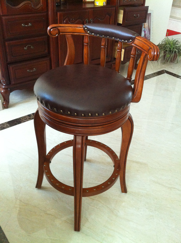 Барный стул в европейском стиле, кожаный барный стул, Европейский барный стул из массива дерева, высокий поворотный стул