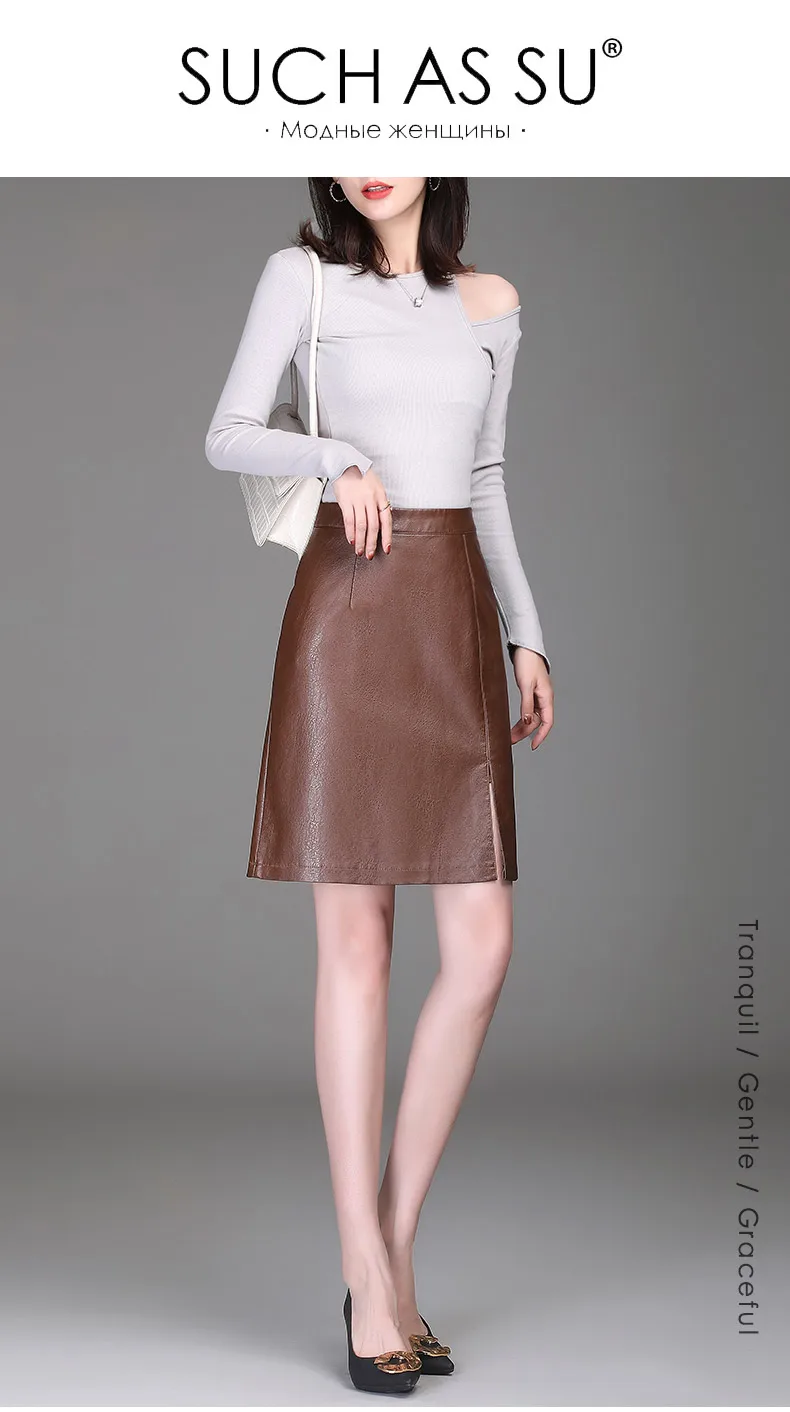 Юбка-трапеция Женская замшевая с завышенной талией милая школьная коричневая