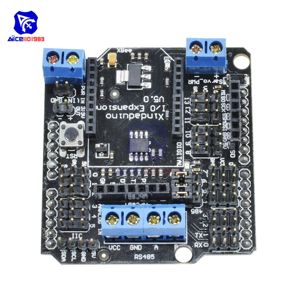 Эта Расширительная плата IO развивается, этот последний расширительный Щит V5 IO теперь поддерживает Xbee. Он сочетает в себе наш популярный Xbee щитС расширительным экраном IO (V4). Он даже поддерживает sd-карту, которая обеспечивает ультиматозное расширение для Arduino до сих пор. Как его предыдущий, он поддерживает RS485, APC220, связь Bluetooth, управление сервоприводом.