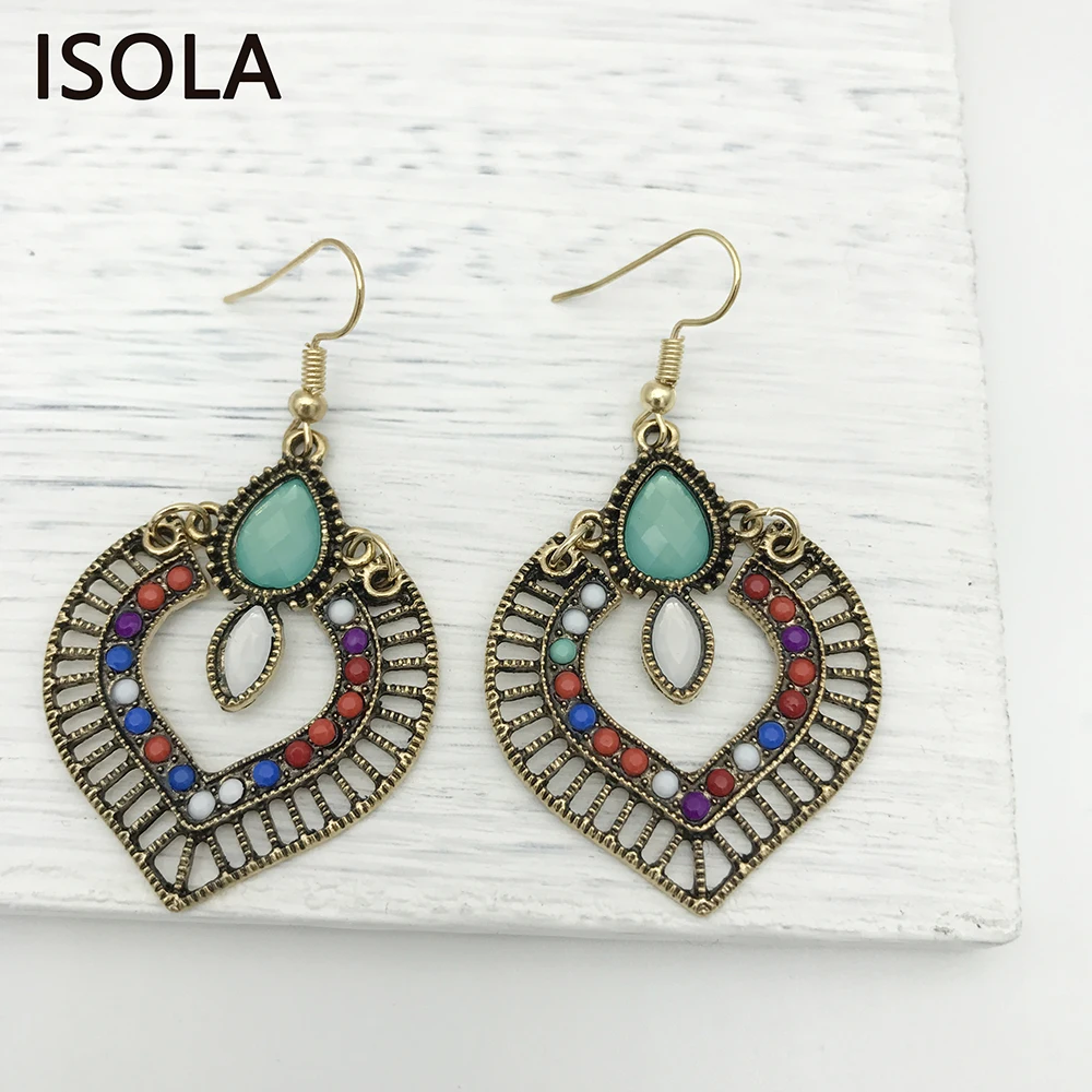 ISOLA заявление племя антикварный Богемия вода капля формы горный хрусталь окруженный большой слезоточивый форма капля акрил серьги с подвесками, стиль винтаж