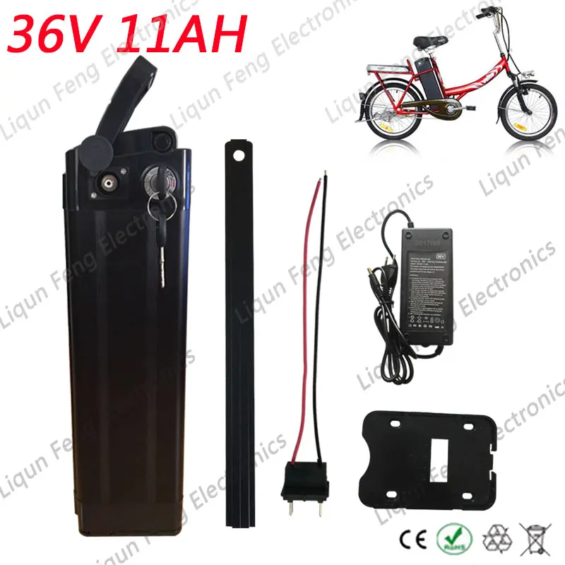 500W 36V 11AH Electric Bicycle Battery 36V Silver Fish Case Electric Bike Battery 36V 11AH Lithium ion Battery with 2A Charger.
