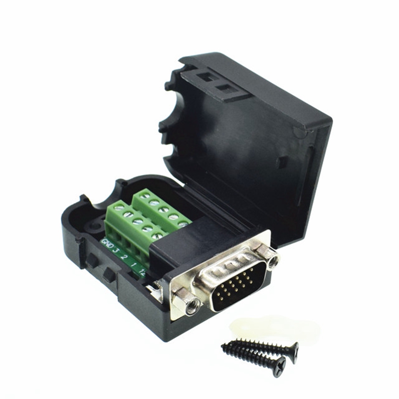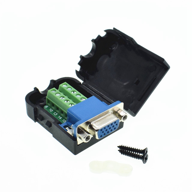 15 pin DB15 гнездо Гайка адаптер разъем D-SUB VGA терминал с пластиковой крышкой 3 + 6 кабель для передачи данных