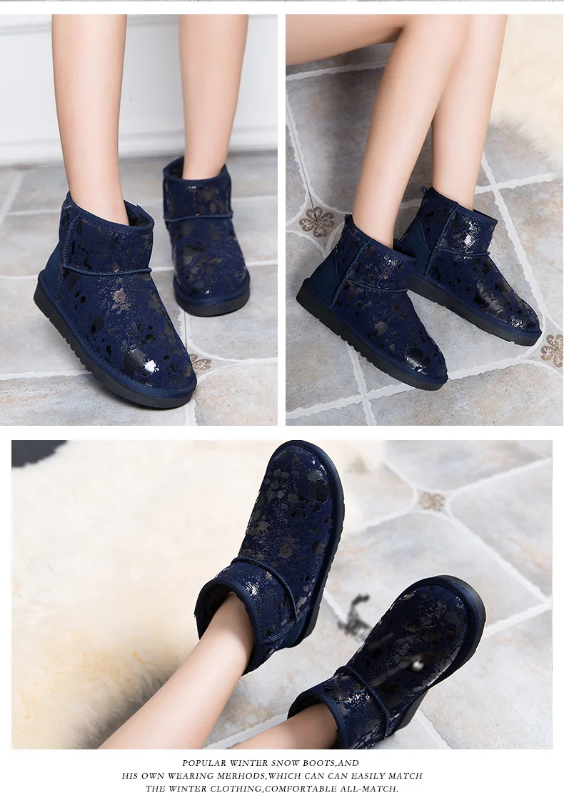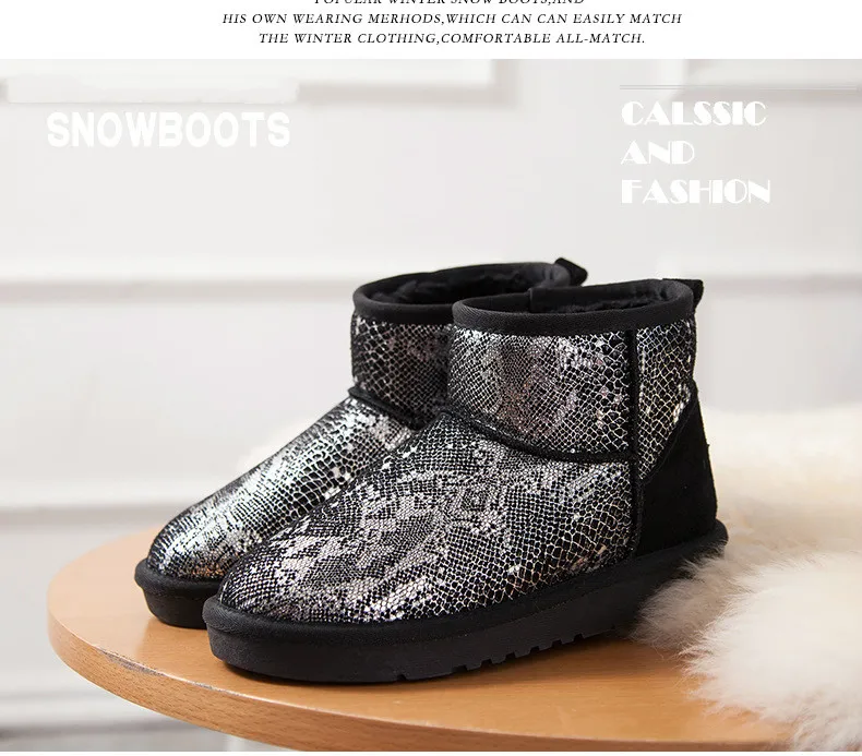 2017 Warm Snow Boots Winter Women Shoes Split Leather Thick Plush Round Toe Flat With Female Fur Snow Boots Women Adriamala