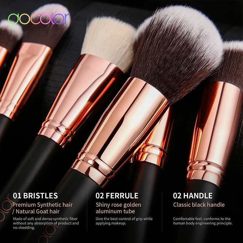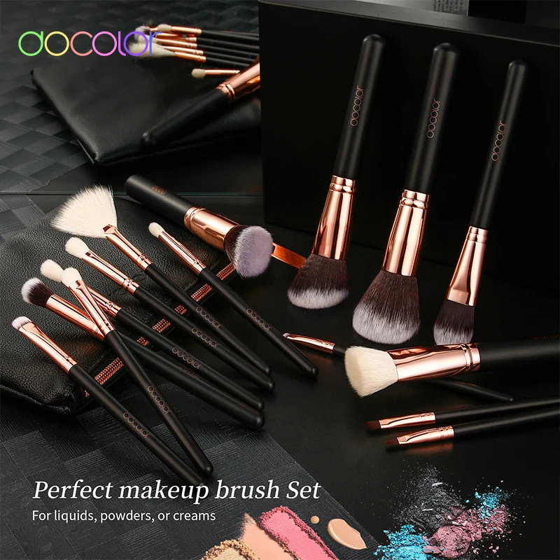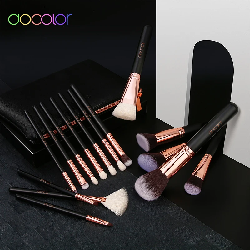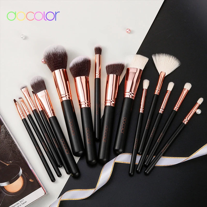 Docolor 15 шт набор кистей для макияжа тональная пудра, кисть для теней на веки козья щетина синтетические волосы Кисть для макияжа с сумкой