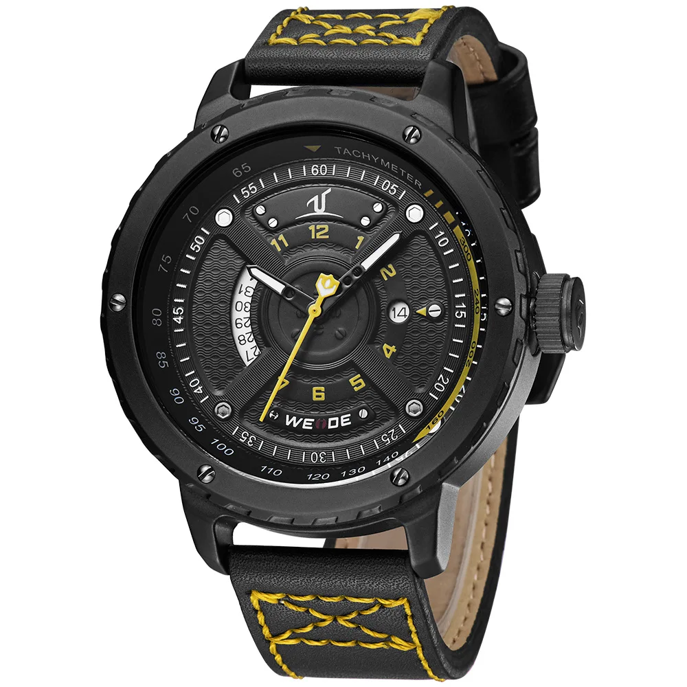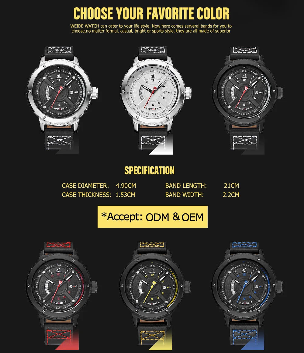 Бренд: WEIDE Товар: UV1609 Стиль: спортивный, Повседневный, деловой Дисплей: Аналоговый Механизм: оригинальный японский кварцевый MIYOTA 2115 Характеристика: -Модель (UV1605) с 6 привлекательными вариантами; -Японский кварцевый механизм MIYOTA 2115; -Классный и специально разработанный чехол для часов; -Ремешок из натуральной кожи и Пряжка из нержавеющей стали; -Уникальный гальванический 3D логотип WEIDE & Universe на два кольца с ремешком. -Экологический IP черный вакуумный гальванический чехол, и прошел стандарт ROHS; -Корона часов с экологичным ips-бронзовым гальваническим покрытием; -Водонепроницаемость 30 метров (не подходит для плавания, дайвинга, душа и т. д., пожалуйста, не нажимайте кнопки под водой); -Погрешность при ходьбе ± 45/м. Спецификация (приблизительная): Диаметр корпуса: около 4,9 см (1,81 дюйма) Толщина чехла: 1,53 см (0,54 дюйма) прибл. Длина ремешка: около 21 см (8,27 дюйма) Ширина ремешка: около 2,2 см (0,94 дюйма) Компоненты в комплекте: 1 x оригинальные часы WEIDE