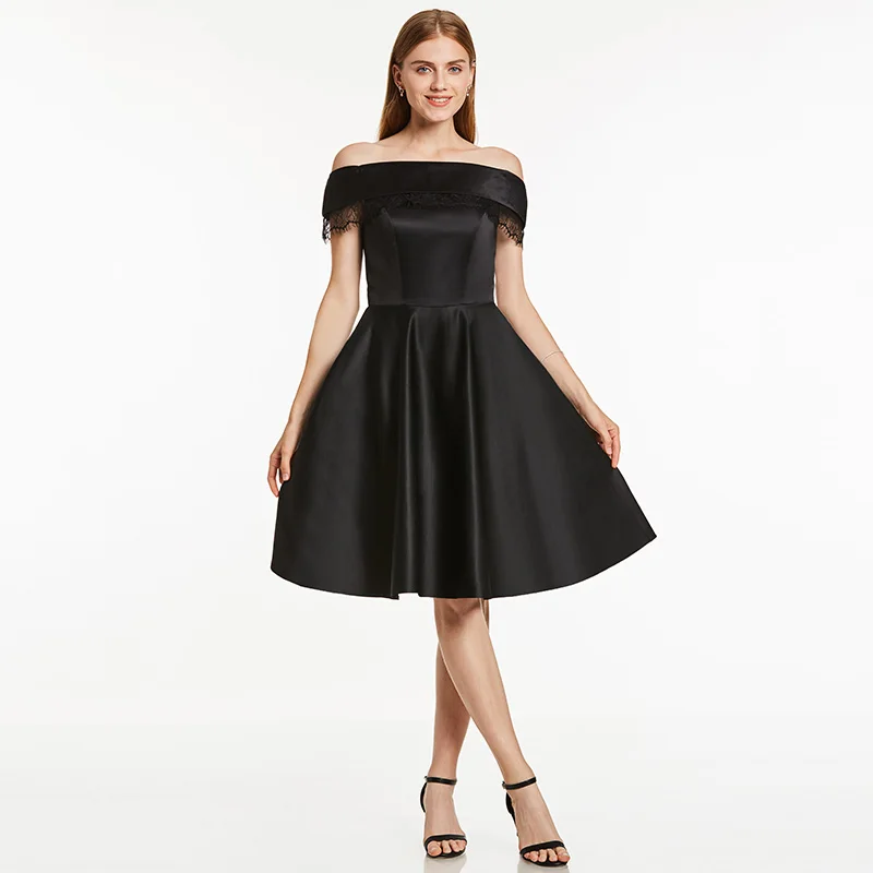Короткое платье для выпускного вечера Tanpell, красное платье с открытыми плечами длиной до колена, ТРАПЕЦИЕВИДНОЕ ПЛАТЬЕ, Дешевое женское коктейльное вечернее платье на выпускной