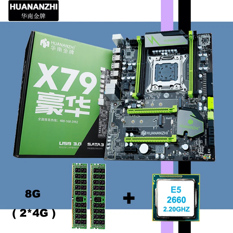 Материнская плата + Xeon E5 2660 C2 CPU + 2*4G DDR3 RECC + охлаждающий адаптер + кабель SATA + металлический задний щит + диск драйвера + Руководство пользователя