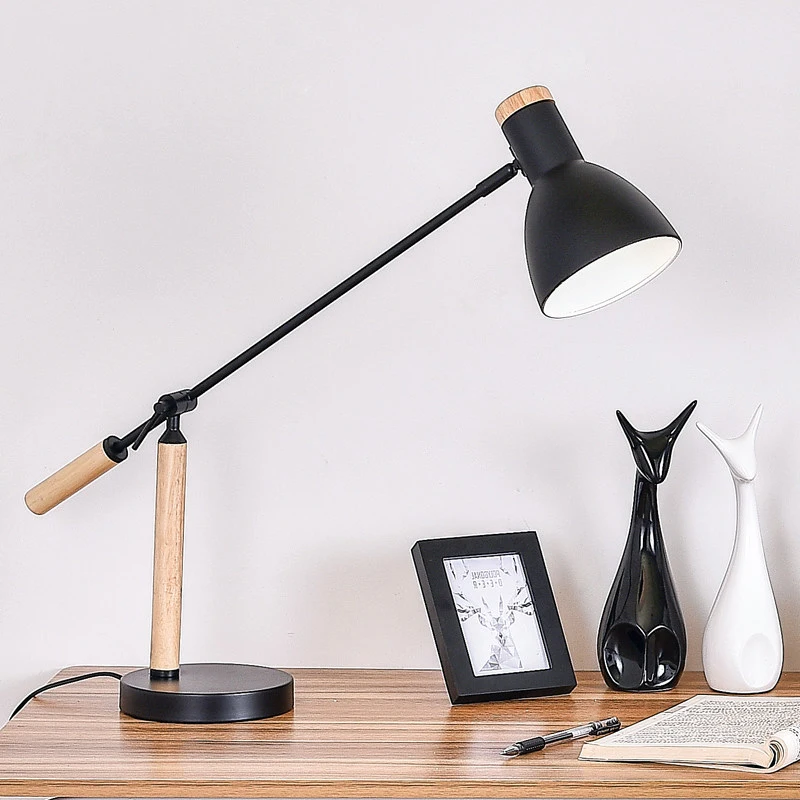Скандинавский светодиодный настольный светильник, минимализм, современный черный, белый, красный цвет, дерево, гостиная, спальня, офис, лампа для чтения Параметры Простая Скандинавская современная настольная лампа Светильник Размер: маленький размер настольная лампа: Dia.15cm x H.45cm Настольная лампа большого размера: диаметр 15 см х 70 см Светильник источник: E27 светодиодный потолочный светильник Материал: дерево и металлический абажур Светильник: оригинальный цвет дерева и белый/черный/красный цвет абажура. Применение: Отель, офисный зал Чайный домик чайный бар Домашний декор осветительный прибор для гостиной паба Посылка включает в себя: 1 шт. простая современная настольная лампа