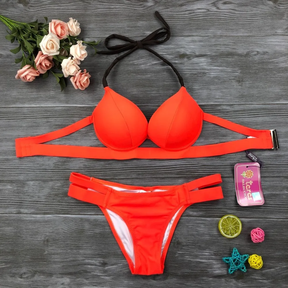 Женский купальник-бикини Teres, однотонная пляжная одежда с лямкой на шее, комплект бикини, пляжный купальный костюм, бандо, лето 2019