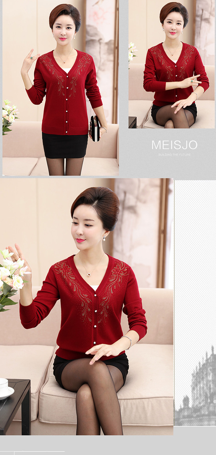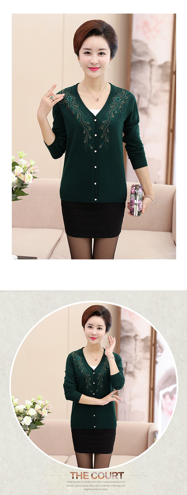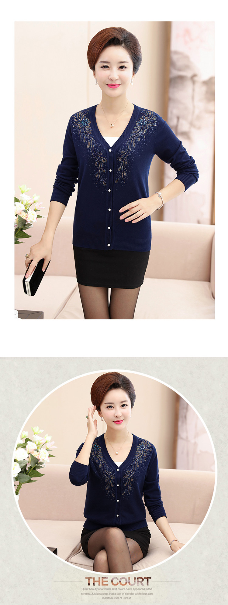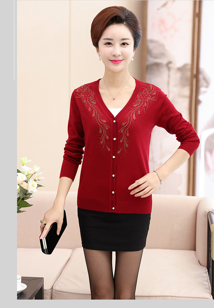 Clobee 2017 осенний трикотажный кардиган в китайском стиле для среднего возраста, свитер большого размера, женская одежда с цветочной вышивкой J18
