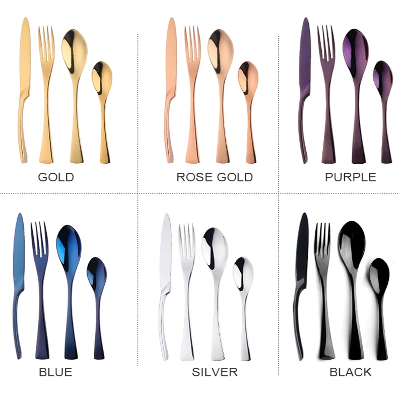 Комплектация: 1 набор = 4 шт = 1 столовый нож + 1 Настольная вилка + 1 Настольная ложка + 1 чайная ложка