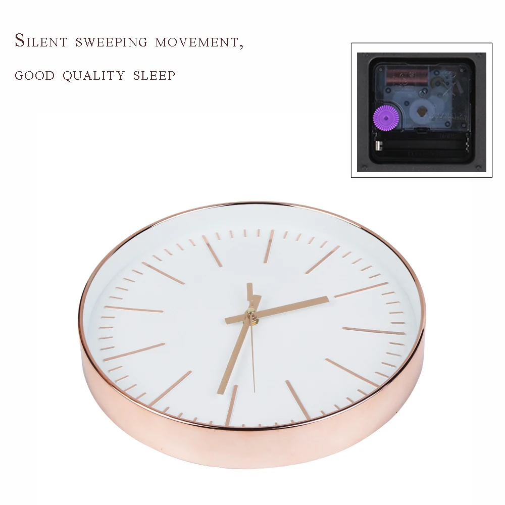 12 дюймовые настенные часы из розового золота, современные минималистичные круглые часы, пластиковые настенные часы, бесшумные кварцевые часы для украшения дома
