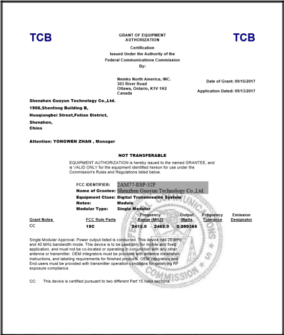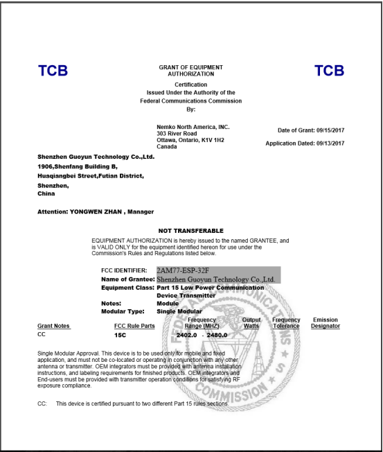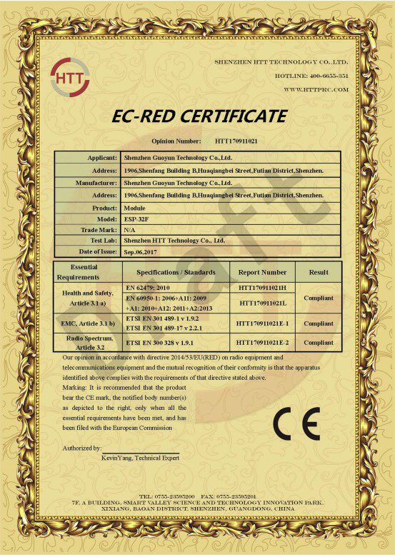 ESP-32F 模组 CE 认证
