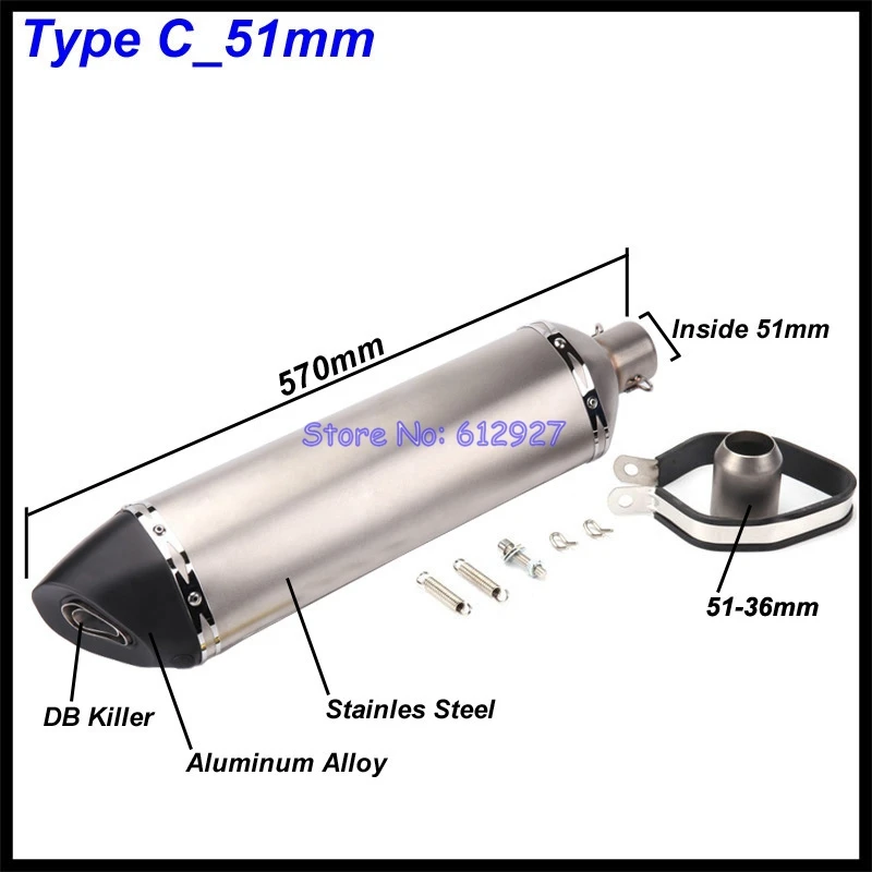Длина 570 мм на входе 51 мм 61 мм глушитель выхлопной трубы мотоцикла Escape Moto DB убийца универсальный для Tmax Xmax PCX RSV4 S1000RR и т. Д.