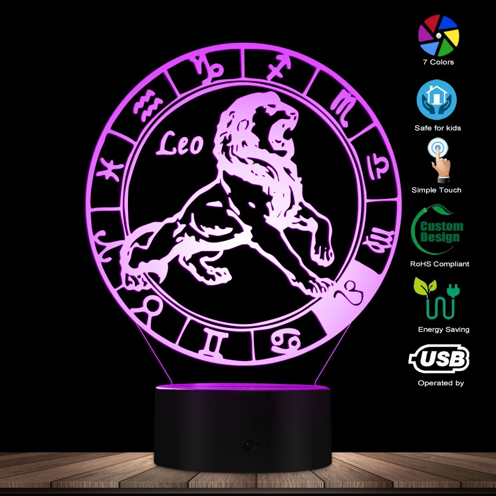 Светодиодный светильник Leo 3D-это сочетание искусства и технологии, которая создает оптическую 3D иллюзию и воспроизводит трюки на глазах. Издалека вы увидите дизайн, но по мере приближения вы увидите тонкий акриловый стеклянный лист, который полностью плоский. Он должен ослепить и произвести впечатление на ваших гостей, постоянно освещая комнату и вашу жизнь. Этот игривый продукт сочетает в себе мужские волокна с натуральными материалами и производится с использованием как машин, так и ручной работы. Идеально подходит для отображения в вашей спальне, гостиной, офисе, в качестве ночной лампы или любым способом, который вы хотите использовать.