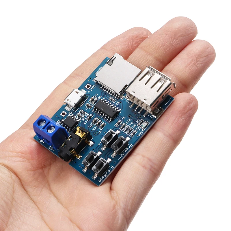 Поддержка формата MP3, включение питания автоматически. Когда mp3 воспроизводится, мигает красный светодиодный индикатор.