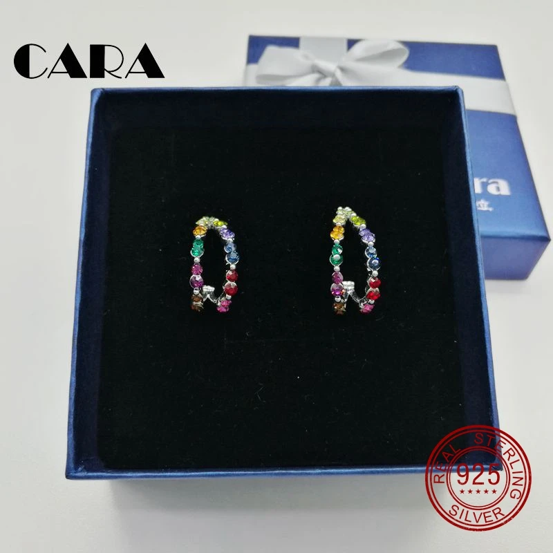 Женские серьги-кольца CARA0145 из стерлингового серебра 925 пробы с австрийскими кристаллами, 12 цветов, новинка 2017