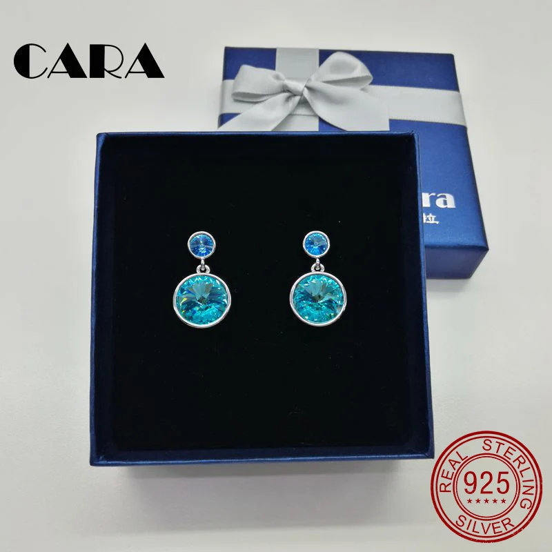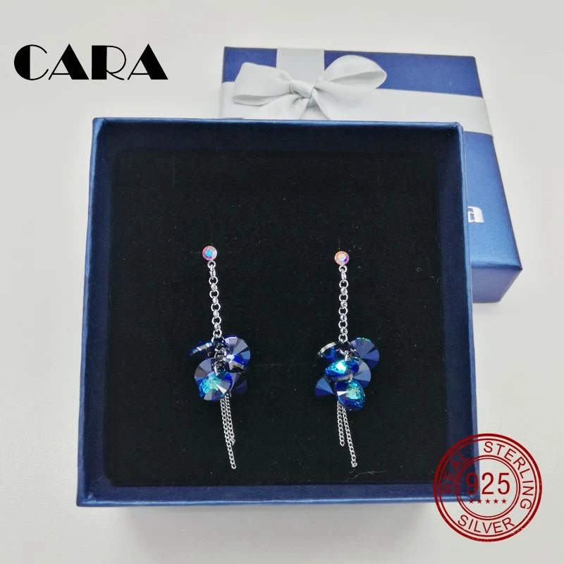 Новые модные серьги из стерлингового серебра 925 пробы с кристаллами SWAROVSKI, украшенные австрийскими кристаллами, очаровательные женские подарочные серьги CARA0016